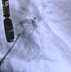 A prótese oclusora do apêndice atrial esquerdo é posicionada, liberada e testada